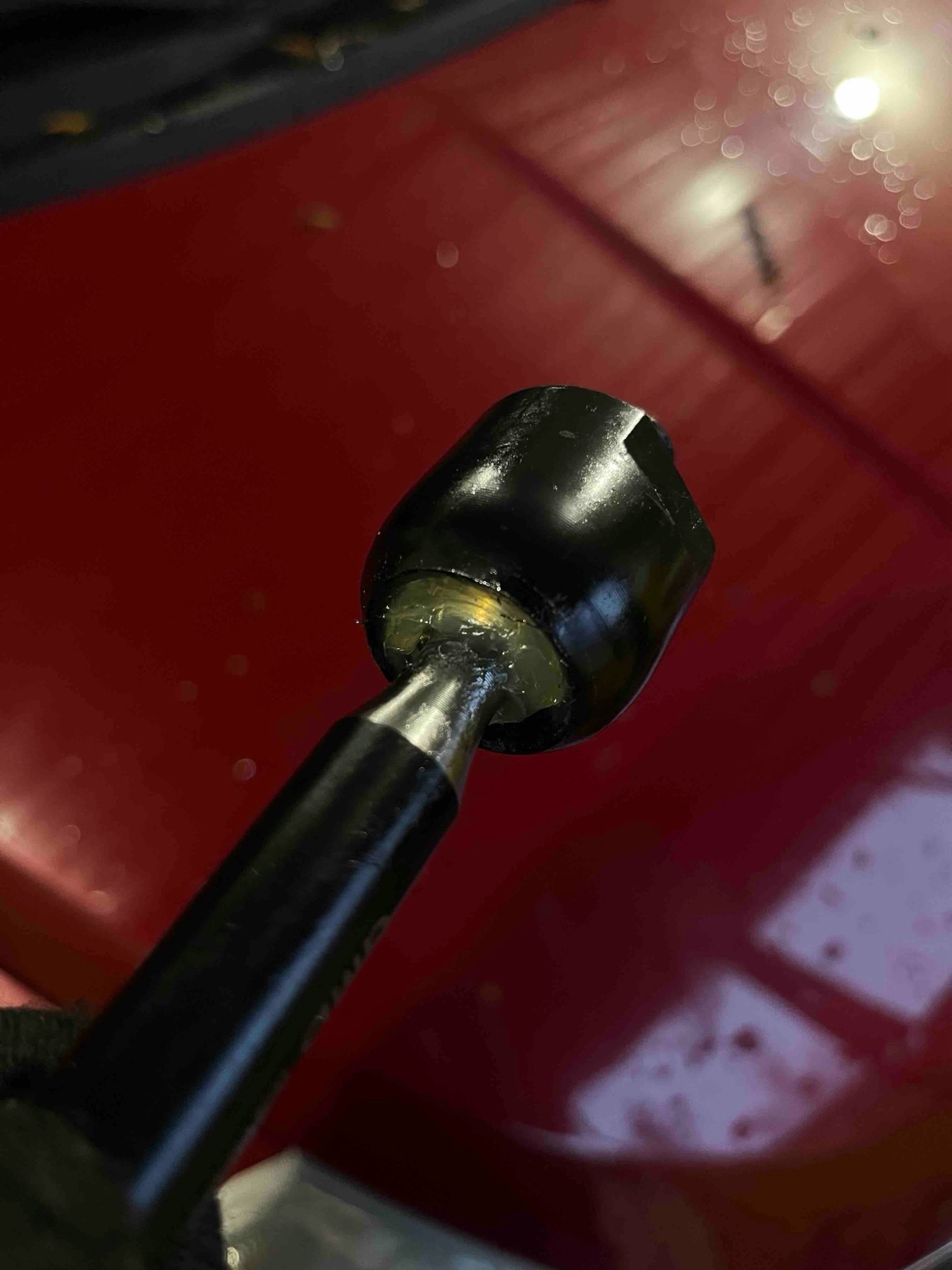 Понравилось исполнение. Смазка присутствует, но надо проверять перед установкой, пружинка легко снимается и одевается. на верхнюю манжету еще нахлобучил утяжку, на 2х стойках проверил, только в одном шарнире маленько добавил смазки, а в 3х было дофига. Есть место под шестигранник и под рожковый ключ на 24! , а сама гайка на 19. На Тойоту Версо подходят отлично. Куплена по цене 466р.